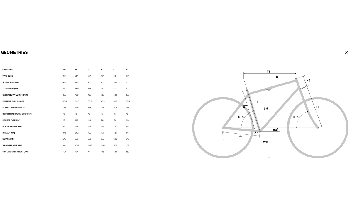 Размеры рамы: XXS, XS, S, M, L, XL