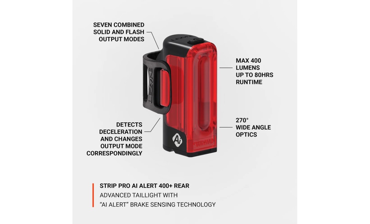 Задняя фара LEZYNE STRIP PRO Ai ALERT 400+ REAR