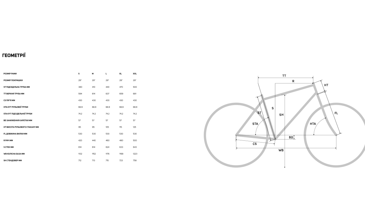- Розмір рами S, зріст 150-165;M, зріст 170-180;L, зріст 180-190;XL, зріст 185-195