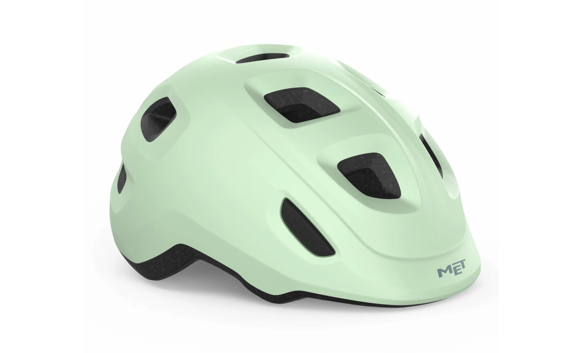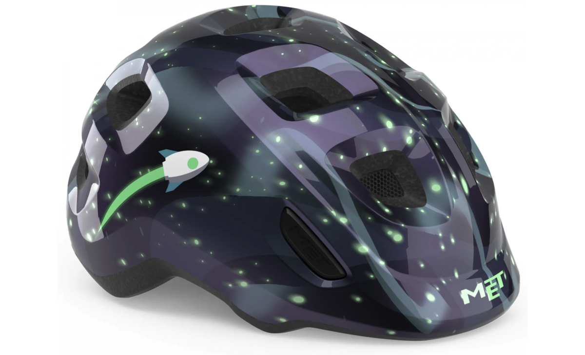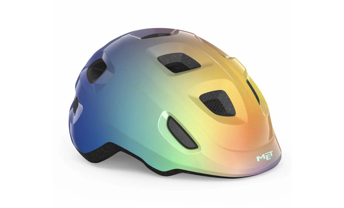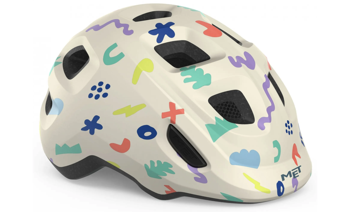 Met Hooray. Сучасний дитячий велошолом, що побудований з урахуванням особливостей використання найменшими велосипедистами. Тильна частина має сплющену форму для зручнішого використання у велосипедних кріслах, акценти захисту зміщені у найвразливіші зони — скроні та потилицю. Внутрішні повітряні канали в сукупності із 10 вентиляційними отворами запобігають перегріву в літній період, а унікальна технологія Bimbi Secure MET гарантує відсутність точок тиску на тім'я. Нова система фіксації Safe-T Junior дозволяє шолому рости разом з головою дитини. Розмір легко регулюється завдяки зручному регулятору, а ремінь для голови на 360 забезпечує стабільну та надійну посадку. Застібка дозволяє легко закріпити шолом і уникнути небажаних защемлень шкіри шиї.